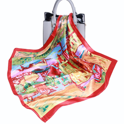 Oem Manufaktur Frau personal isierte quadratische Seide Satin Schal benutzer definierte Druck