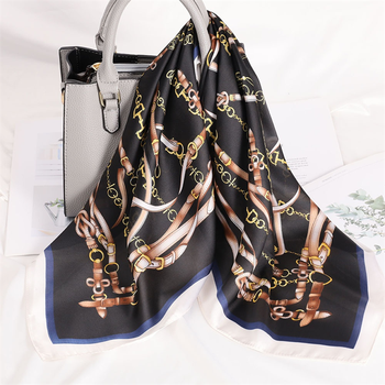 Benutzer definierte 90cm quadratische Satin Seiden schal schwarz weiß Kettenglied Muster Gold Akzente für Tasche Dekor