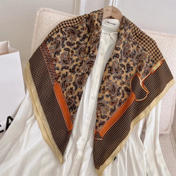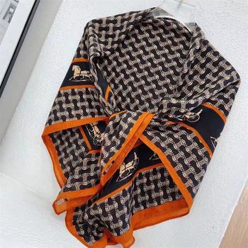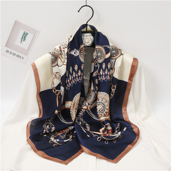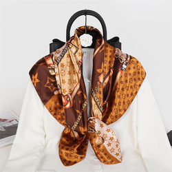 Bufanda de satén de poliéster cuadrada de 90cm al por mayor patrón ecuestre de cadena de oro impreso digital personalizado