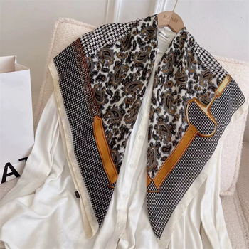 Bufanda cuadrada grande de seda con logotipo personalizado de 90x90CM, nueva bufanda de diseñador de moda salvaje para mujer, estampado de lunares de leopardo, satén caliente AliExpress