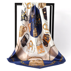 Patrón de bolso de lujo Bufanda de seda de imitación cuadrada de 90cm para mujer Accesorios de decoración de bolsos de moda
