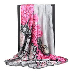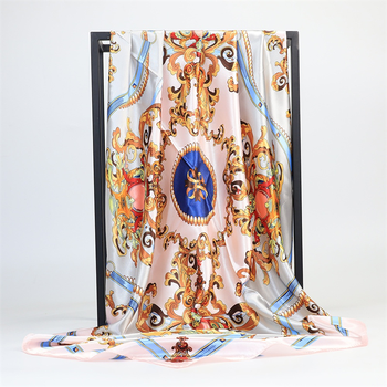 Venta al por mayor de verano nueva moda europea americana viento flor patrón Impresión logotipo personalizado 90 90 bufanda cuadrada señoras material satinado