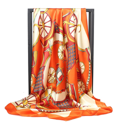Vibrante rueda de carro naranja estampado 90cm bufanda cuadrada de satén accesorio de moda audaz regalo