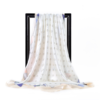 Elegante bufanda cuadrada de satén de 90cm, diseño de medallón decorativo de oro azul Crema para mujer, envoltura de hombro de lujo