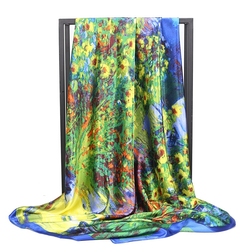 Amarillo verde impresionista abstracto Floral impresión Digital imitación seda 90cm bufanda cuadrada para regalo de fiesta