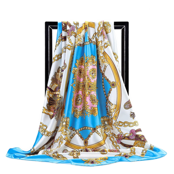 Mujeres azul claro blanco dorado barroco patrón imitación seda gran cuello cuadrado bufanda para el cabello envoltura 90cm regalo