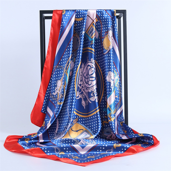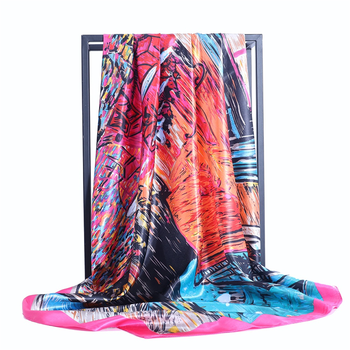 Venta al por mayor de verano nueva moda europea americana viento flor patrón Impresión logotipo personalizado 90 90 bufanda cuadrada señoras material satinado