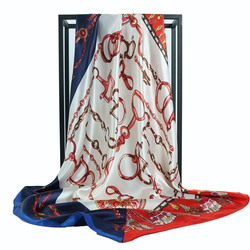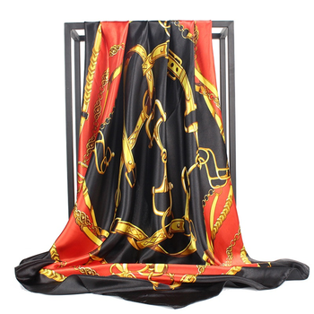Bufanda cuadrada de satén con estampado de cadena de hebilla roja y negra para decoración o regalo de ropa profesional para mujer