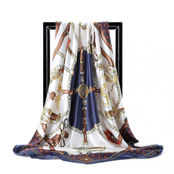Blanco Azul Beige Caballo Zapato Cadena Estampado Imitación Seda 90cm Gran Cabeza Cuadrada Bandana