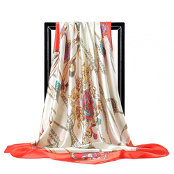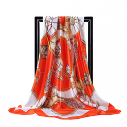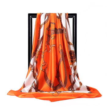 Elegante bufanda cuadrada de satén con estampado de cadena de borlas naranja crema de 90cm para regalo de boda para mujer