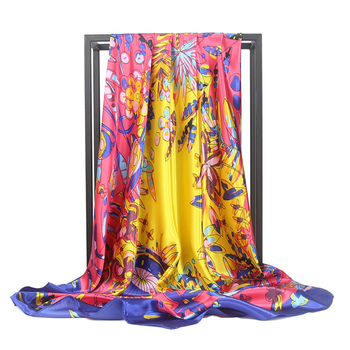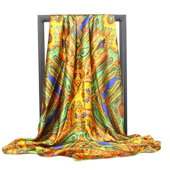 Logotipo personalizado 90*90Cm Zijde Grote Vierkante Sjaal Hete Stijl Satijn Print Dames Zijden Sjaal Aliexpre Nieuwe Wilde Sjaal Vrouwen
