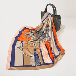 Bufanda cuadrada grande de seda con logotipo personalizado de 90x90CM, bufanda de seda con estampado de satén de estilo caliente para mujer, nueva bufanda salvaje AliExpre para mujer