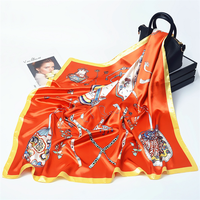 Elegante 100% Zijde Satijnen Sjaal China Fabriek Groothandel 90*90Cm Vierkant Klassiek Designer Bedrukt Luipaard Dames Effen Stijl