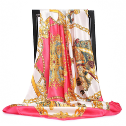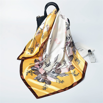 Private Label Personnalisé 90x90cm Carré Satin Écharpe Femmes Animal Motif Mode Vêtements Sac Décor