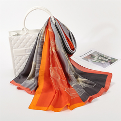 Grand Carré Orange Gris Imprimé Floral Polyester Satin Soie Écharpe Femmes Cou Cheveux Cravate Tête Wrap