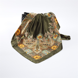 Olive Green Orange Floral Paisley Border Print Square Silk Satin Scarf Womens Gift Bandanna
