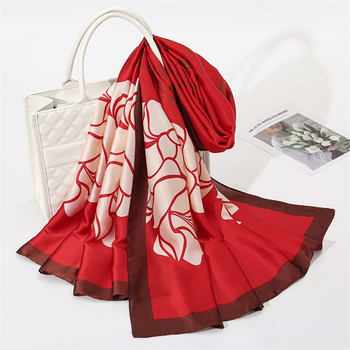 Long Oblong Polyester Satin Scarf Bold Botanical Print Shawl With Tailor Made Logo for Malaysia Instant Hijab