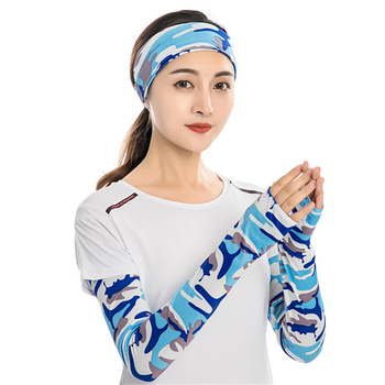 Hicool Camouflage seta di ghiaccio protezione solare sportiva manicotti da equitazione lunghi 53cm con foro per le dita