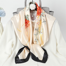 カスタムデジタルプリント90cmスクエア100% 桑シルクスカーフレディース花柄ヘッドネックネクタイ