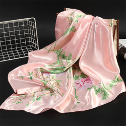 ソフトピンクホワイトグリーン花柄プリントスクエアポリエステルサテンスカーフ女性用ヘアヘッドネック装飾アクセサリー