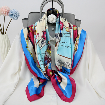 90*90CMカスタムロゴシルク大きな正方形のスカーフホットスタイルサテンプリントレディースシルクスカーフAliExpre新しいワイルドスカーフ女性