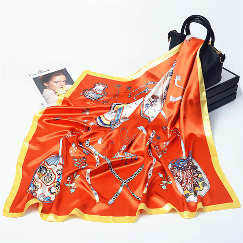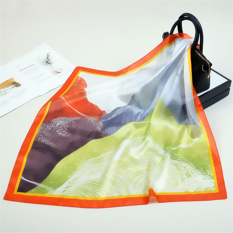 女性用50*50 cmカスタムサテンデザイナースカーフ高級スカーフサテンシルクスクエアスカーフ