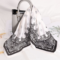 黒白ペイズリーボーダープリント大きな正方形の模倣シルク女性ヘッドスカーフ