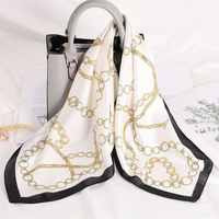 ホワイトブラックゴールドチェーンリンクプリントサテン大正方形模造シルクネックスカーフ