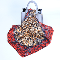赤黒ヒョウアニマルチェーンプリントサテン大正方形女性ファッションネックスカーフ