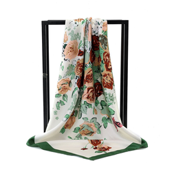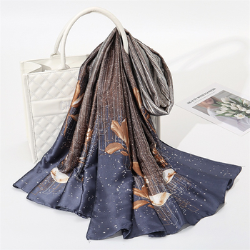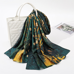 Темно-зеленый желтый олень цветочный принт длинный полиэстер атласный шелковый шарф Женская шаль с запахом головы