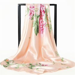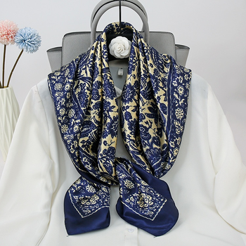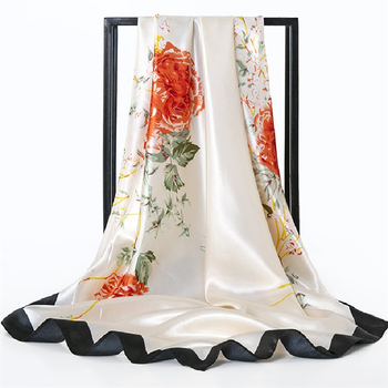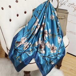 Toptan yaz yeni moda avrupa amerikan rüzgar çiçek desen baskı özel Logo 90 90 kare eşarp bayanlar saten malzeme