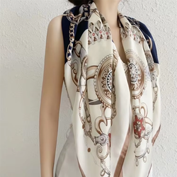 Özel 90cm kare saten çanta dekor için ipek eşarp siyah beyaz zincir bağlantı desen altın aksan